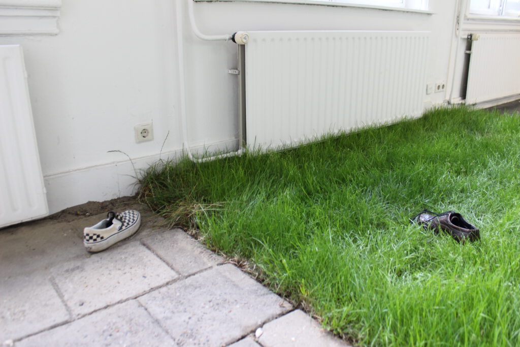 By creating the setting of a street, the shoes and audience both are in a place and space that feels alienating. By both being in this space, an even playing field is created. This makes it easier to connect to the objects.